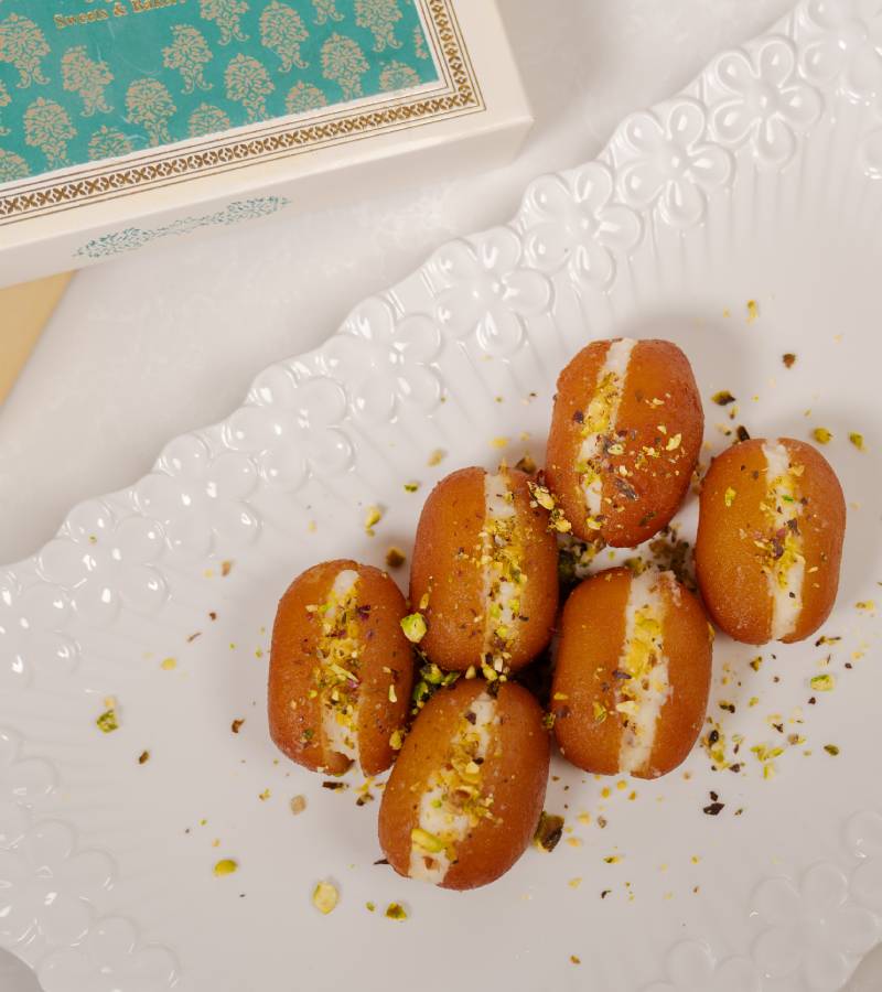 Dil Bahar is an eclair-shaped soft and creamy dessert indulged in sweet syrup with a traditional creamy milk paste (Khoya) filling.