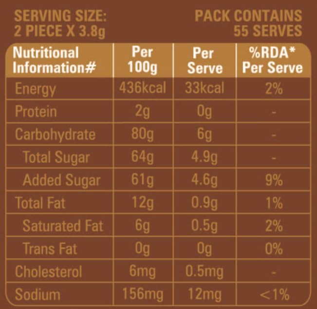 sugar, Liq. Glucose, HVF, Milk solids, Butter, Coffee Extract, Humactant, Iodised salt, Emulsifiers