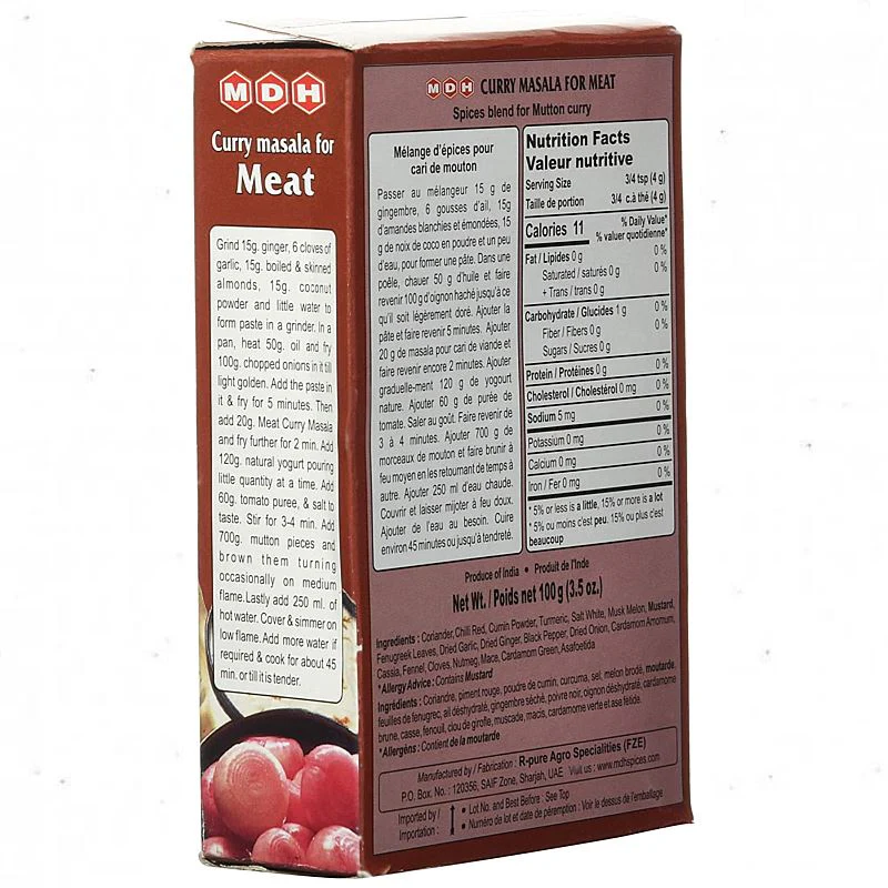 MDH Meat Curry Masala (100g) is a ready-to-use spice blend from Mahashian Di Hatti Pvt Ltd (MDH), designed to impart a deep, rich tan and a bold, aromatic flavor to meat dishes like mutton, chicken, and beef.