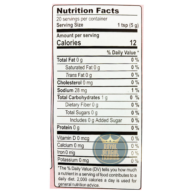 ingredients: Coriander seeds, Cumin, Red Chillies, Turmeric, Black Pepper, Iodised Salt, Dried Ginger, Mustard, Fennel, Seeds, Garlic, Cassia, Fenugreek Leaves, Cardamom Amomum, Cloves, Nutmeg, Green Cardamom, Mace, Asafoetida.